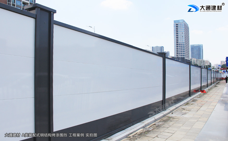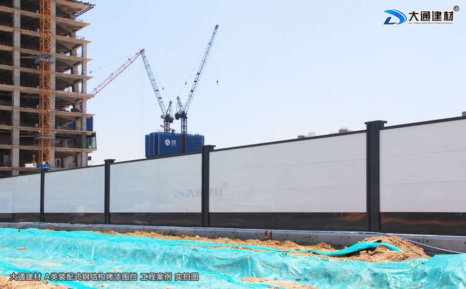 此項目工程施工地圍擋使用的是大通建材鋼結構圍擋全龍骨A,裝配式鋼結構烤漆墻板不易生銹、不易變色、不易脫落、美觀平整、抗腐蝕 、耐久性強,每塊圍擋墻板均有方通龍骨加固,降低重量,保證穩固的前提下,提升性價比,使搬運、安裝更輕便。