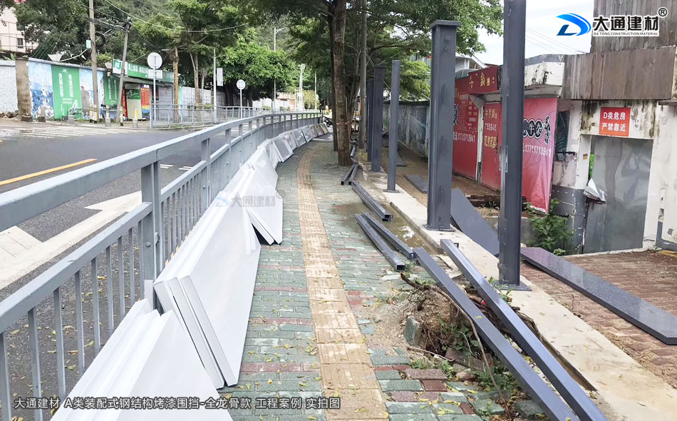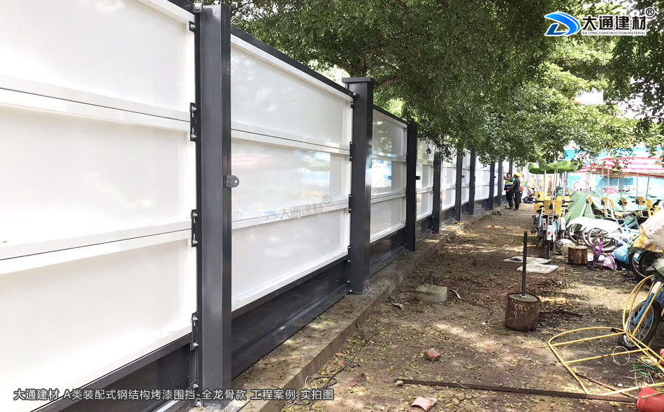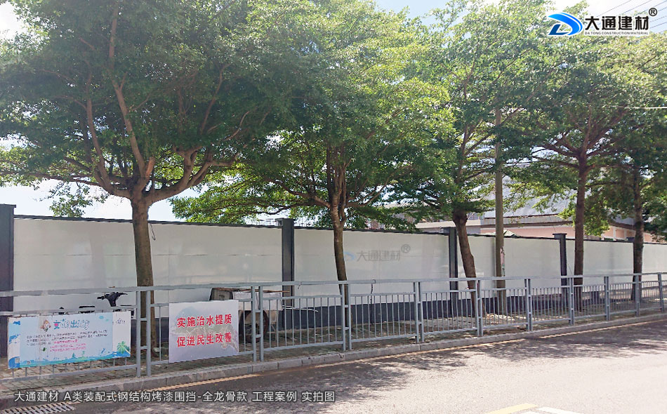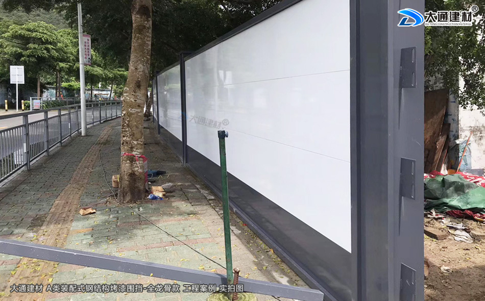 深圳市大通建材裝配式鋼圍擋全龍骨A款 采用裝配式+鋼結(jié)構(gòu)+全龍骨 烤漆鋼板構(gòu)造 安全穩(wěn)固 抗風(fēng)力強(qiáng) 美觀環(huán)保 經(jīng)久耐用,應(yīng)用于廣東省深圳市大鵬新區(qū)楊梅坑改造項目工程中,以下展示的圍擋圖片是大通建材裝配式鋼圍擋全龍骨A款在該項目部分位置的實拍圖