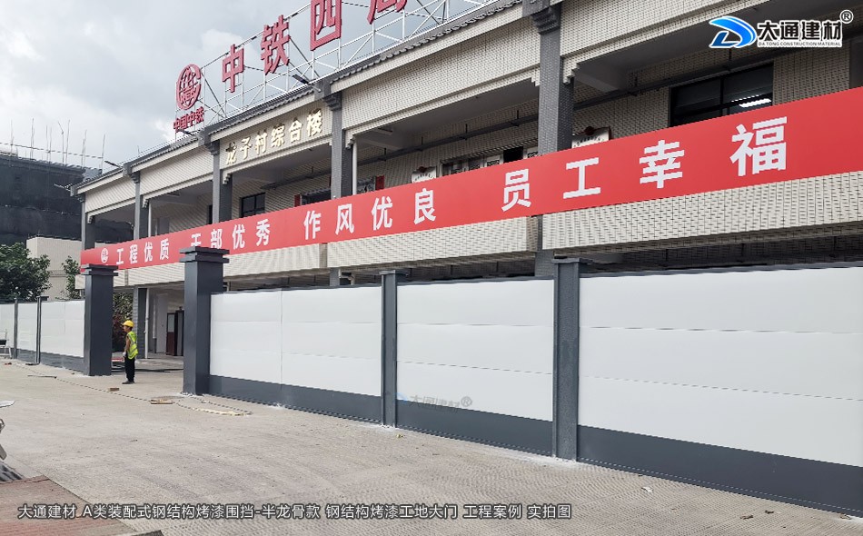 了解更多關于“大通建材 2.5米高烤漆鋼圍擋A款-項目工程圍擋+工地大門”的生產定制、批發零售、施工安裝等詳情 請致電 13826562448 梁先生