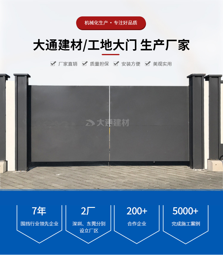 深圳市大通建材有限公司生產(chǎn)批發(fā)標(biāo)準(zhǔn)工地大門、鋼結(jié)構(gòu)工地大門、鋼制大門,用于工程施工現(xiàn)場的大門