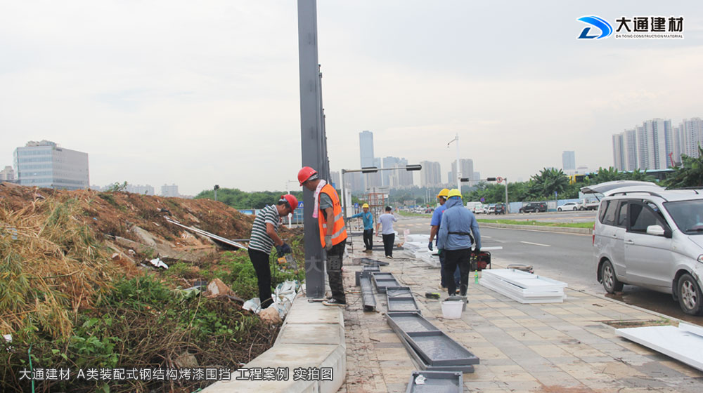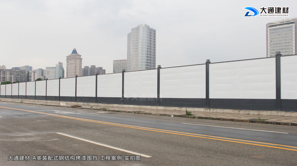 深圳市大通建材有限公司在東莞設(shè)有大型圍擋生產(chǎn)基地,是專業(yè)生產(chǎn)東莞市政標(biāo)準(zhǔn)圍擋的廠家,大通建材施工圍擋A款采用鋼結(jié)構(gòu)框架式結(jié)構(gòu),立柱采用國標(biāo)型鋼,圍擋板采用1.2mm厚 的白色+灰色烤漆鋼板拼裝。圍擋核心受力關(guān)鍵點(diǎn)由立柱、斜支撐、橫撐加強(qiáng)筋共同組成,三重受力,預(yù)防圍擋傾倒,通過受力模型計(jì)算,抗風(fēng)等級≤10級,抗剪強(qiáng)度、抗彎強(qiáng)度、穩(wěn)定性更強(qiáng),已應(yīng)用于東莞茶山鎮(zhèn)施工項(xiàng)目。