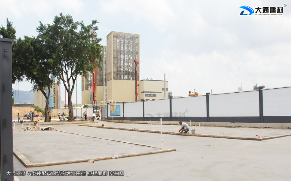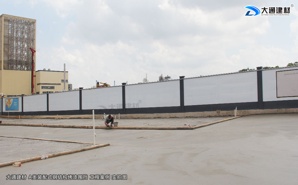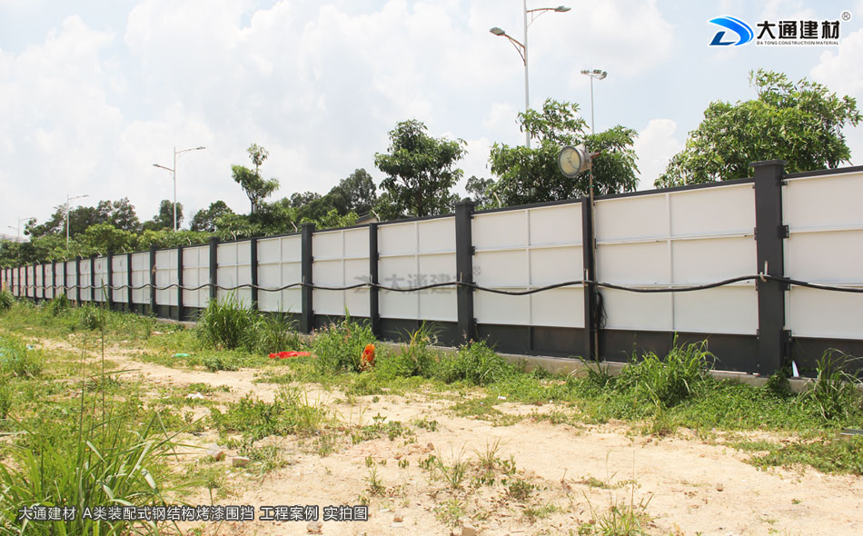 東莞東坑鎮(zhèn)工地臨時施工工程選用的是深圳市大通建材有限公司生產(chǎn)批發(fā)的鋼結(jié)構(gòu)圍擋a類2.5米高半龍骨款 來對施工工地進行隔離防護