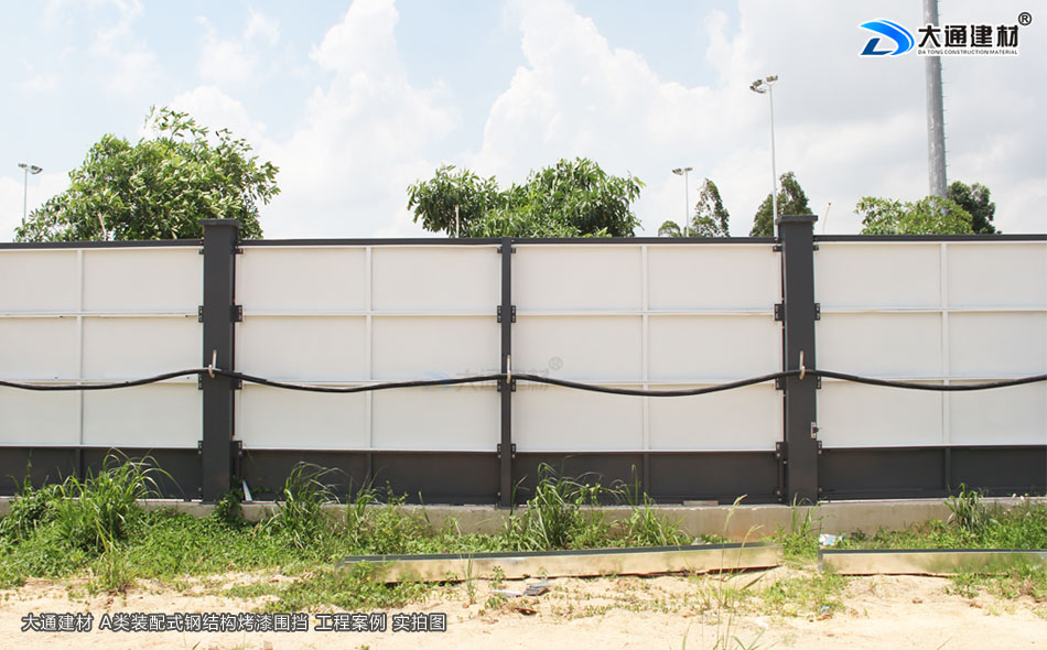 上述展示圍擋圖片為大通建材烤漆鋼結(jié)構(gòu)圍擋A型2.5米高半龍骨款的工程案例