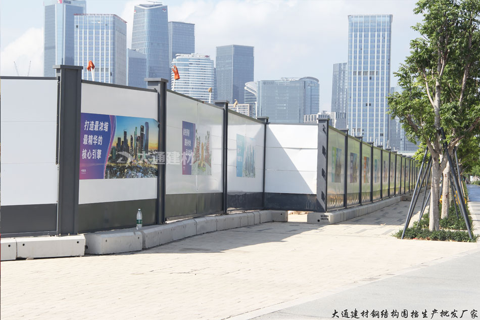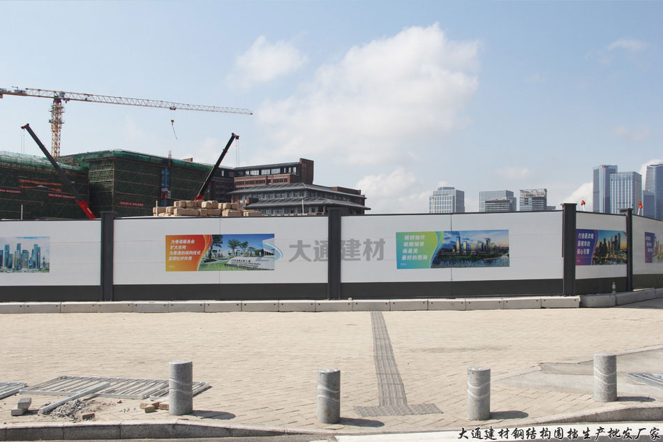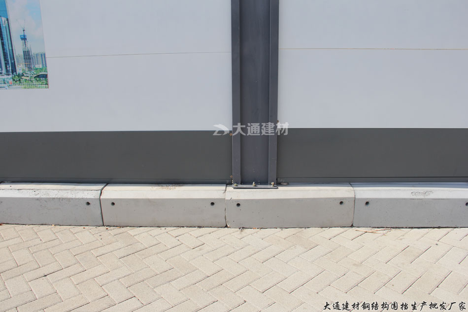 深圳市大通建材有限公司生產的惠州款鋼結構圍擋由左右立柱、上下橫梁、墻板,底板、基礎等配件構成,具有抗壓力強和韌性高的優點