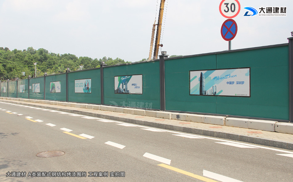 深圳市大通建材有限公司是一家專業生產鋼結構圍擋源頭廠家,在東莞設有大型鋼結構圍擋生產基地,常規鋼結構圍擋有現貨,特殊要求的圍擋可以進行定制化生產。大通鋼結構圍擋A型烤漆款是由廠家直銷,批發價格低、美觀大氣、穩固耐用;適用于市政建設施工、房地產項目施工、地鐵項目施工、管網改造等工程;深圳市大通建材有限公司有著與中國中鐵、中國鐵建、中國建筑、中國電建、中國華西、中國中冶、深圳市政公司、深圳路橋集團等單位建立著友好的合作關系,為深圳很多項目施工提供鋼結構圍擋供貨及配送安裝服務。更多詳情請咨詢:13826562448 梁先生