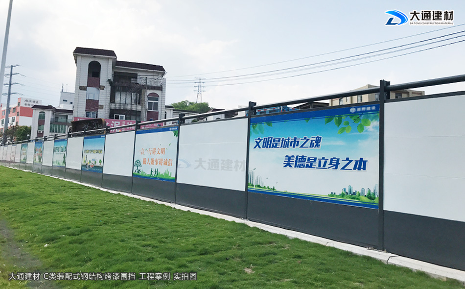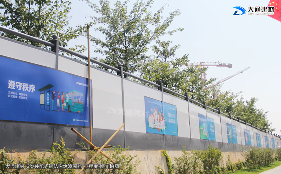 施工安全方案解決工程師,24小時在線等候您的咨詢!深圳市大通建材有限公司10多年來一直從事圍擋生產批發工作,在東莞設有大型鋼結構圍擋生產基地,那么大通建材C類裝配式鋼結構圍擋烤漆款有怎樣的規格特點呢?現在就與大通鋼結構圍擋小編一起了解一下吧。