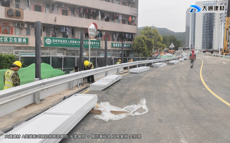 深圳大通建材生產的A類鋼結構圍擋主要由型鋼、方管等鋼材構建框架,搭配鋼板等面板組成。鋼材的高強度賦予圍擋出色的承載能力與穩定性,能夠抵御一定程度的風力、撞擊力,在復雜多變的施工環境中屹立不倒。相比傳統的砌體圍擋,鋼結構圍擋質量更輕,這使得其在搬運與安裝過程中更為便捷,大大縮短了施工周期。同時,其可模塊化設計的特點,方便根據場地實際需求進行靈活組裝與拆卸,能多次重復使用,有效降低了工程成本,符合可持續發展的理念。