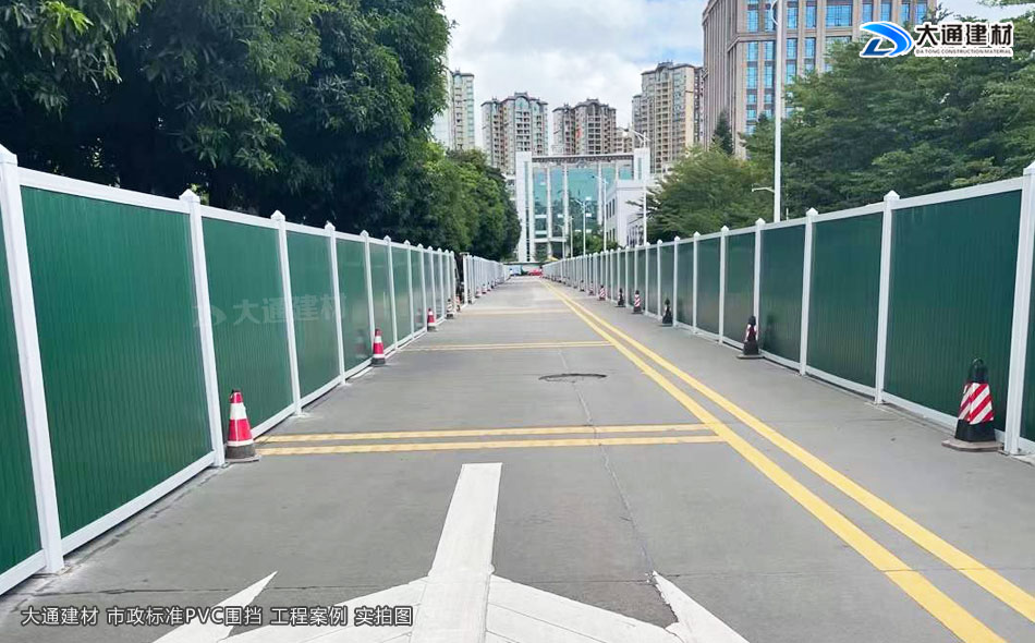 深圳大通建材PVC圍擋表面經(jīng)烤漆工藝噴涂、表面光滑,具有美觀環(huán)保、安全穩(wěn)固、經(jīng)久耐用等特點,適合市政道路建設(shè)施工、地產(chǎn)工程項目建設(shè)施工、管網(wǎng)改造施工、路橋維護施工等工程選用。