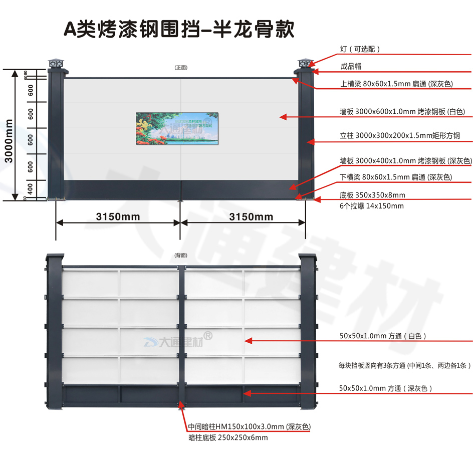 3米高A類烤漆鋼圍擋半龍骨款-項目工程圍擋