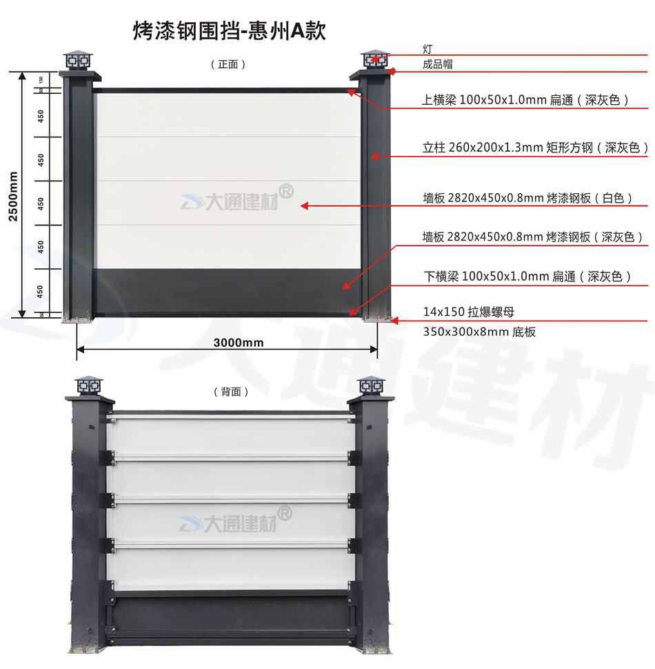 深圳大通建材 裝配式烤漆鋼圍擋-惠州A款 安裝說明