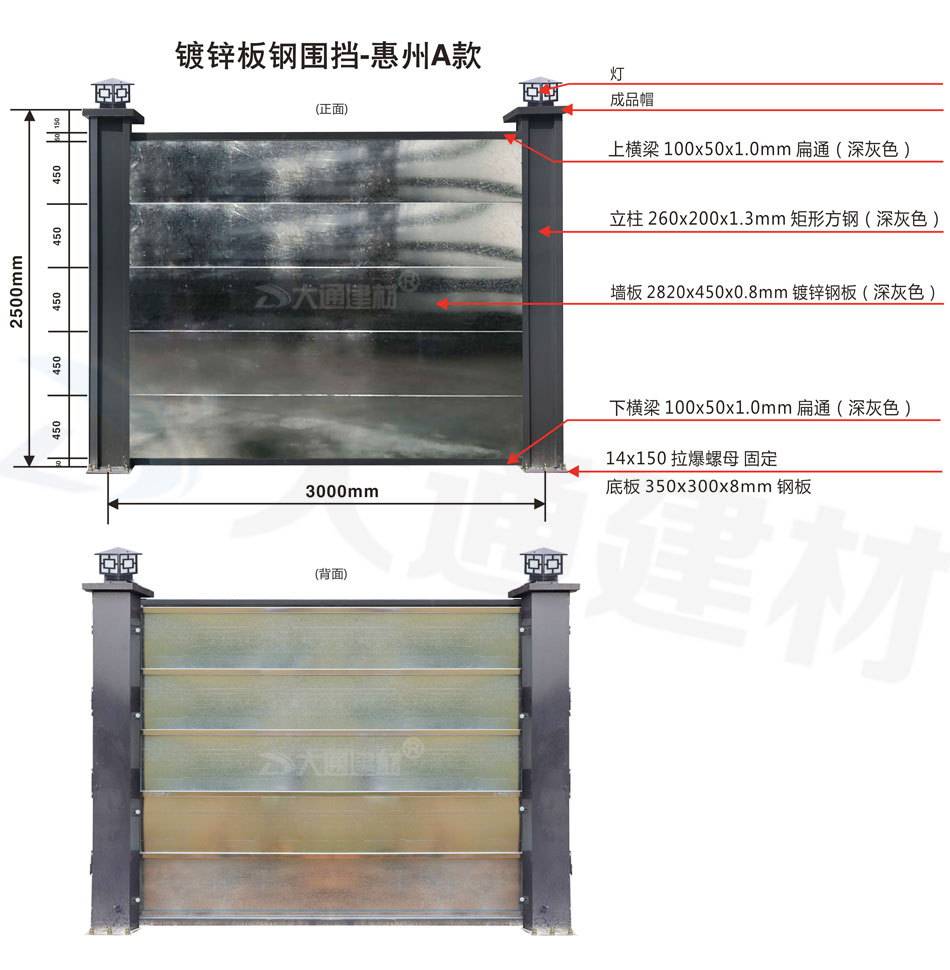 深圳大通建材 鍍鋅板裝配式鋼圍擋-惠州A款 生產(chǎn)批發(fā)源頭廠家
