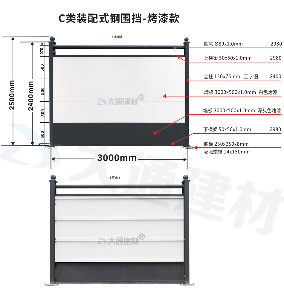 深圳大通建材 裝配式鋼結(jié)構(gòu)烤漆圍擋-惠州C款 生產(chǎn)批發(fā)源頭廠家