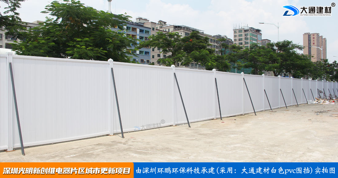 大通建材PVC圍擋采用獨特工藝處理的聚氯乙烯制成,具有優越的耐候性能,可以抗御各種惡劣氣候。無論酷暑還是雨雪風霜,始終保持色彩穩定,不易沾染灰塵等污物,圍擋板面平滑光澤易清洗。采用扣板拼裝式連接,方便圍擋拆卸及運輸。